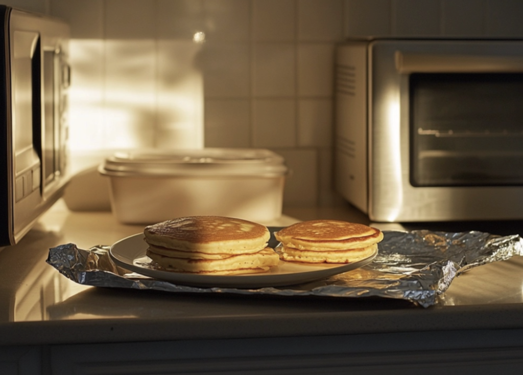 If you’re reheating a larger batch, arrange the pancakes on a baking sheet and cover them with aluminum foil to retain moisture. Reheat in a preheated 350°F oven for 5-10 minutes. This method ensures even heating without overcooking.